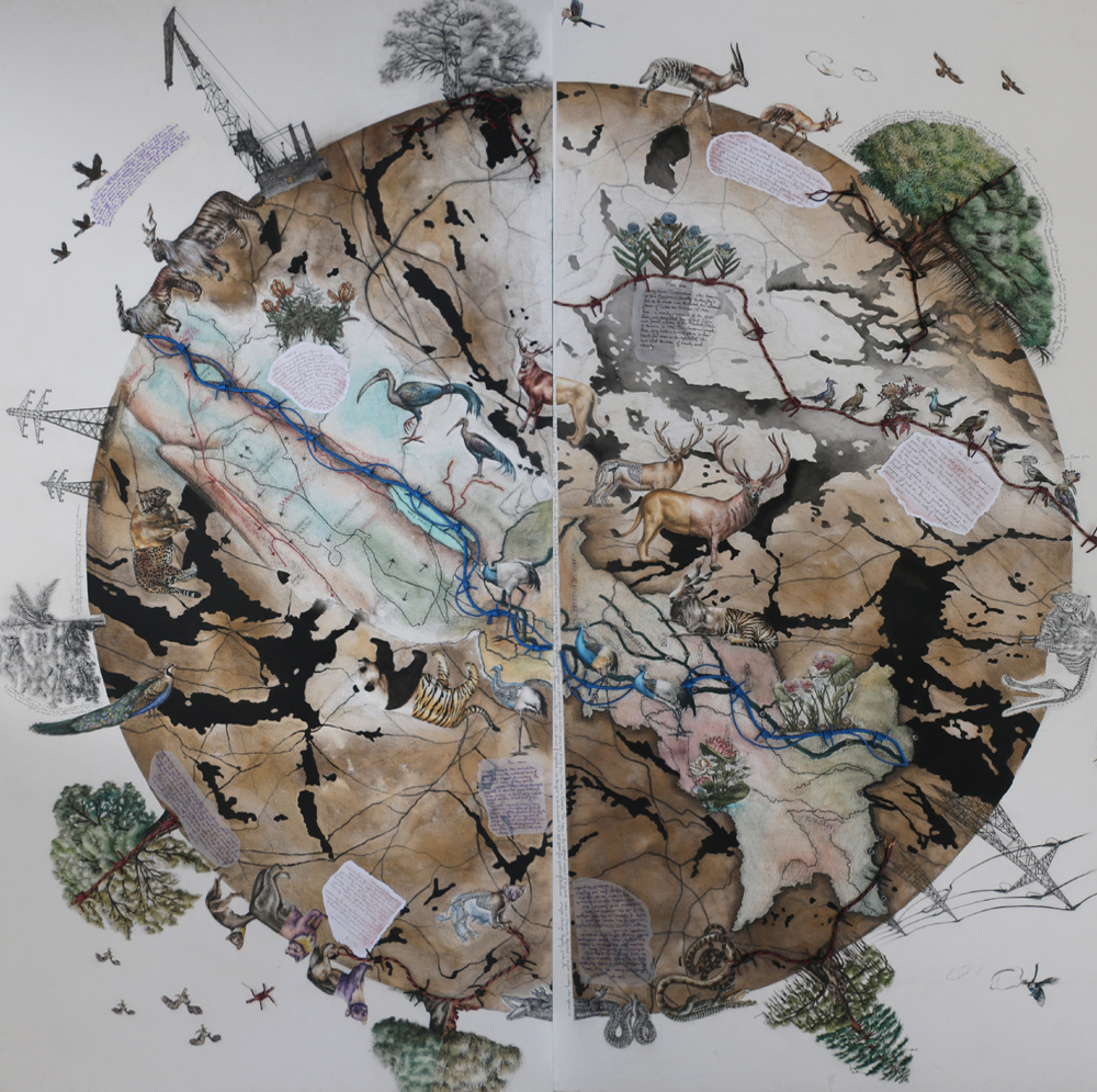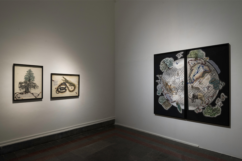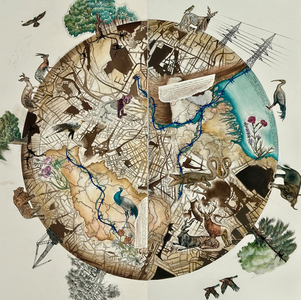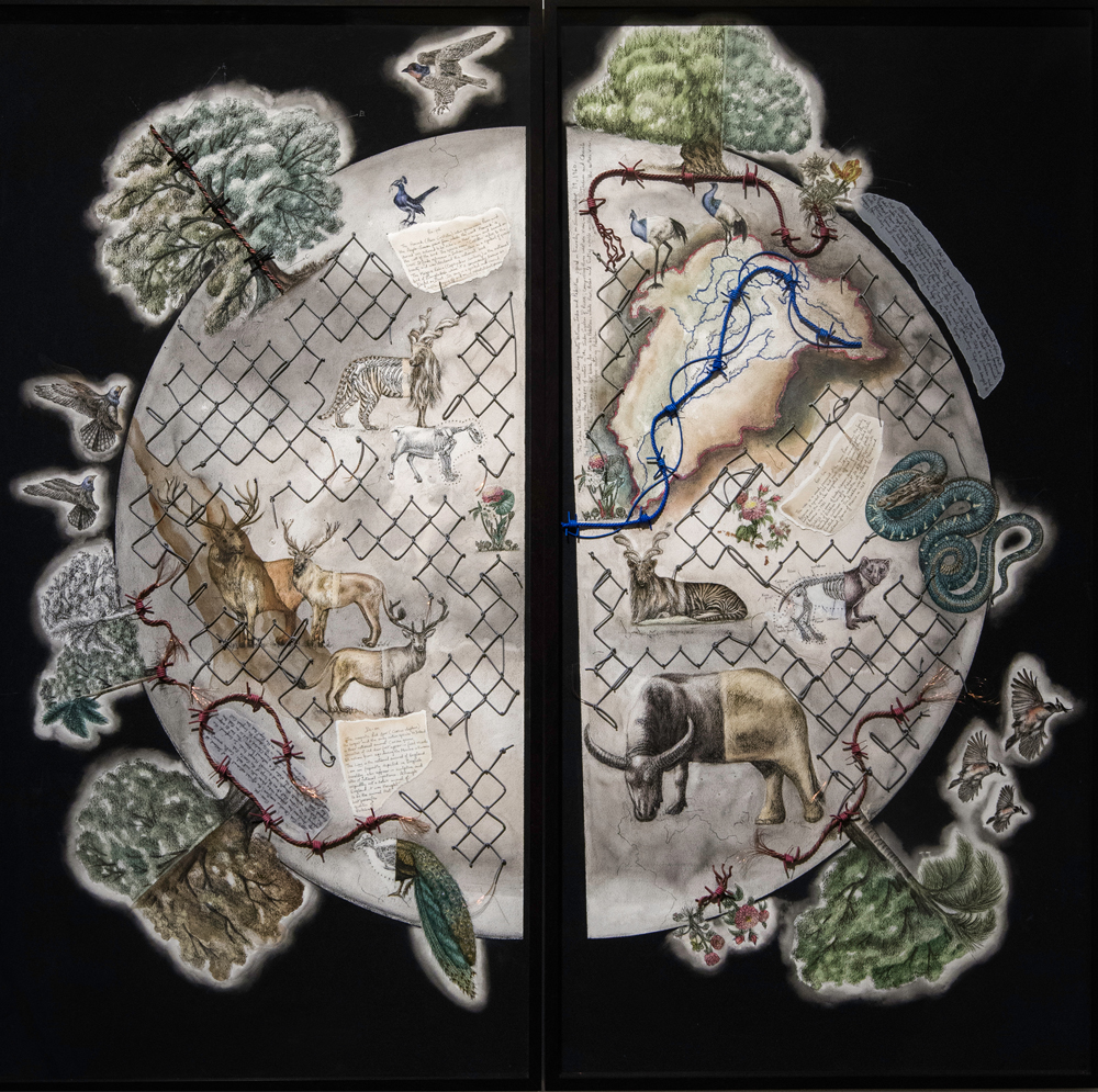 gouache, charcoal, ink and electric wire on Fabriano paper