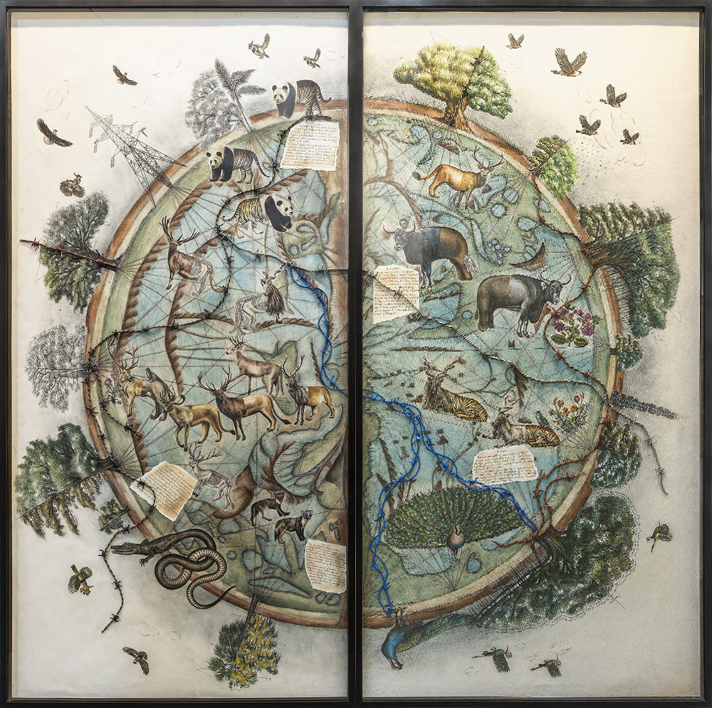 gouache, charcoal, ink and electric wire on Fabriano paper