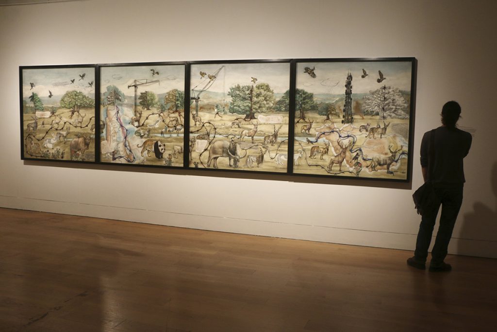 EARTH FAMILIES Reena Kallat’s solo exhibition at the Manchester Museum, forms a conceptual bridge between the human and natural worlds represented by the museum’s rich and varied collections of natural sciences and human cultures. In her works, Kallat seeks answers to perennial human conflicts in the natural world; animating the museum space with new meanings and drawing together multiple strands in the institution’s narrative—of botany, zoology, palaeontology, ethnography, archery and archaeology—to invoke complex histories of conflict and co-existence.