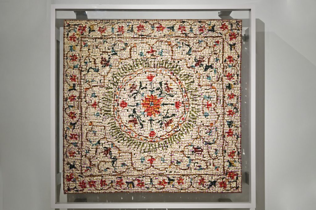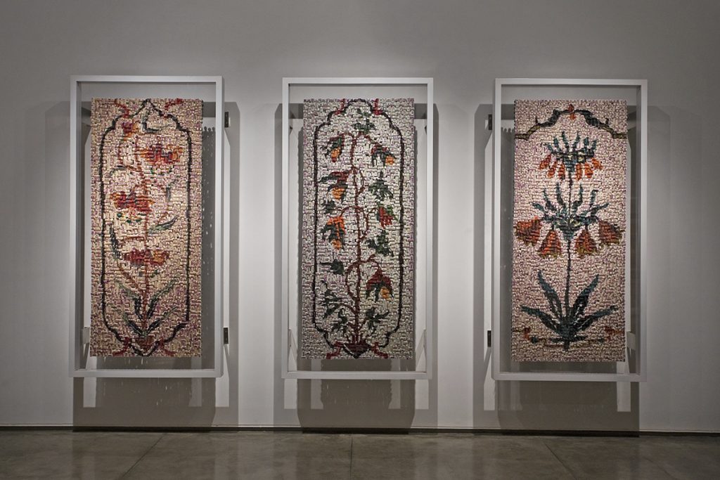 The politics in India with its neighbour Pakistan, the unresolved dispute of Kashmir have been an ongoing dialogue and source of friction between our nations infiltrating into world politics. This has been a source of continued dialogue within the artist’s work. Reena Saini Kallat works as artist and chronicler. Research towards facts and data leads her from one government office to another. Often encountering resistance, her persistence wins over bureaucracy. The names collected, enter into the very essence of her work. Names of actual workers (in symbol forms) who built the Taj Mahal; names of persons who signed the peace petition between India and Pakistan; names of persons who have gone missing due to various accidents. Seen together, if one looks at the various bodies of work within the exhibition, Saini Kallat’s concerns seem to address an overarching sense of loss. In her work, loss of lives during partition, the continued loss of lives through war, through terrorist activities, the very loss of life itself amongst Kashmiri people; the loss of Shahjahan’s wife Mumtaz which prompted the building of the Taj Mahal, followed by the legendary story of the actual builders whose hands were chopped off in order that the Taj Mahal remains an isolated, unique tomb. The loss of lives through accidents, murders, riots or natural calamities, is also collected in languages of the concerned people.